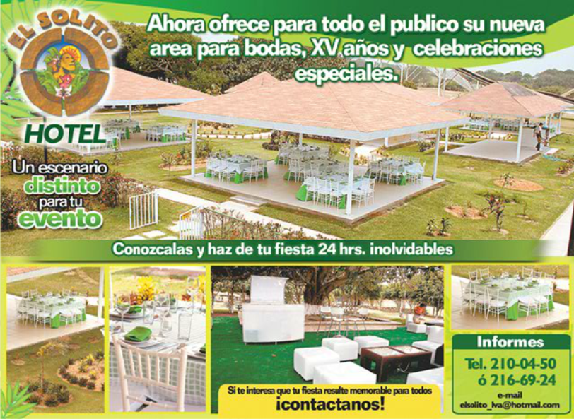 En el hotel del centro de convivencia ecológica El Solito usted podrá disfrutar la sensación de un descanso pleno enmarcado con la belleza de un paisaje natural y un clima ideal para realizar sus deportes y actividades favoritas. El solito ofrece 42 confortables habitaciones, dobles con dos camas matrimoniales, dispuestas en 10 módulos independientes, equipadas con aire acondicionado, TV color, alberca semi-olimpica, un nuevo chapoteadero para los niños, cancha de tenis, futbol, voleibol, servicio de restaurant y amplio estacionamiento.